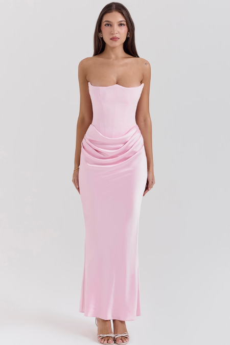 Strapless, sculpted, and effortlessly dramatic.