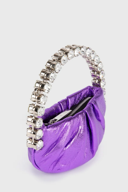 A stone-encrusted metallic micro clutch. Perfect to add a POP of colour!